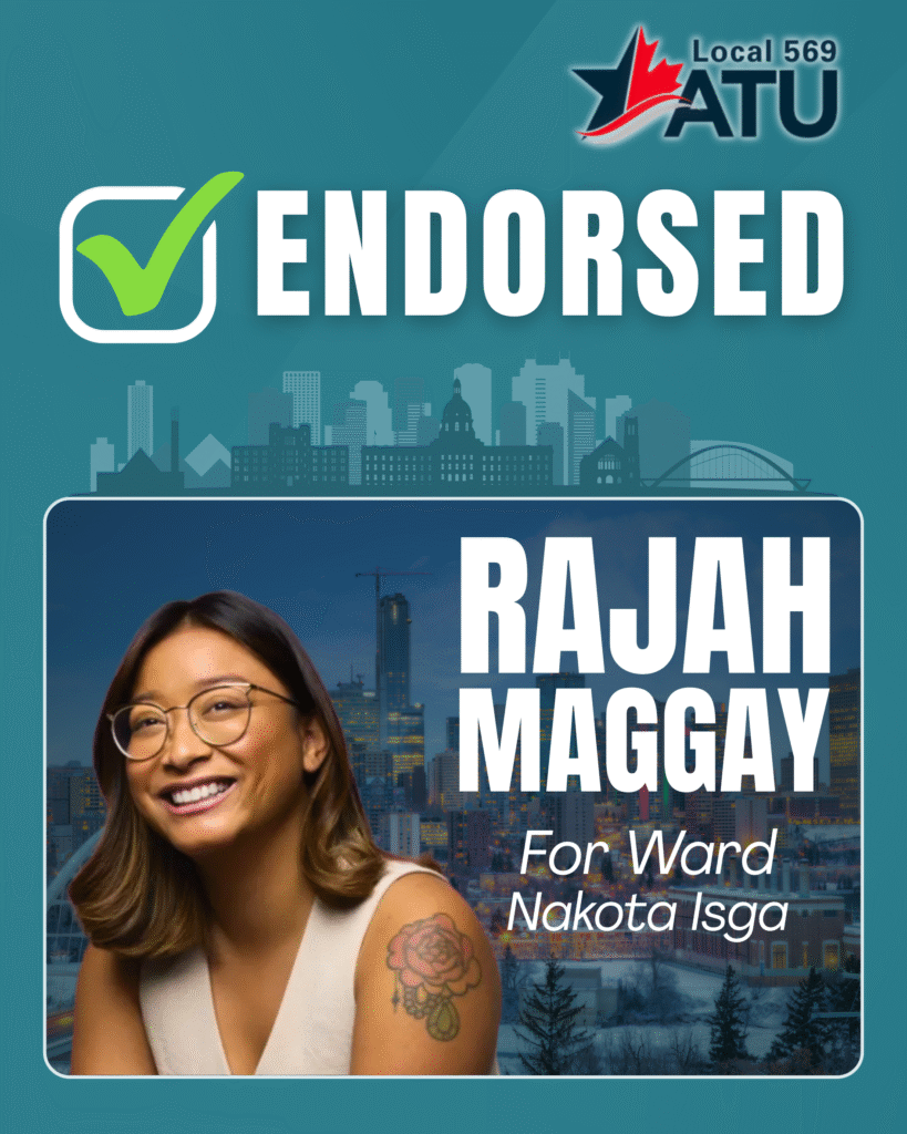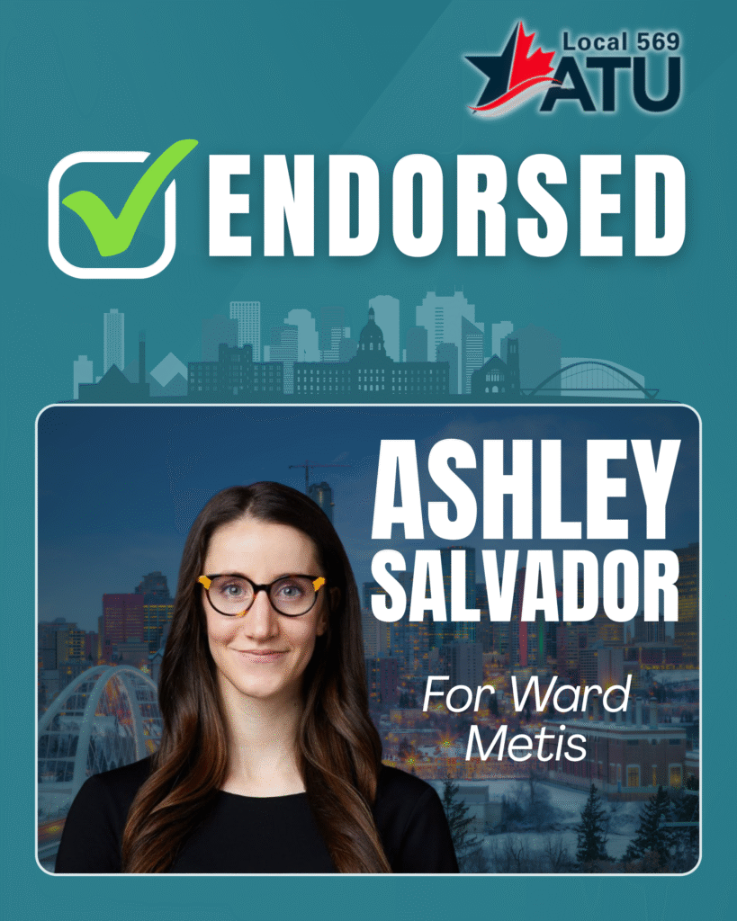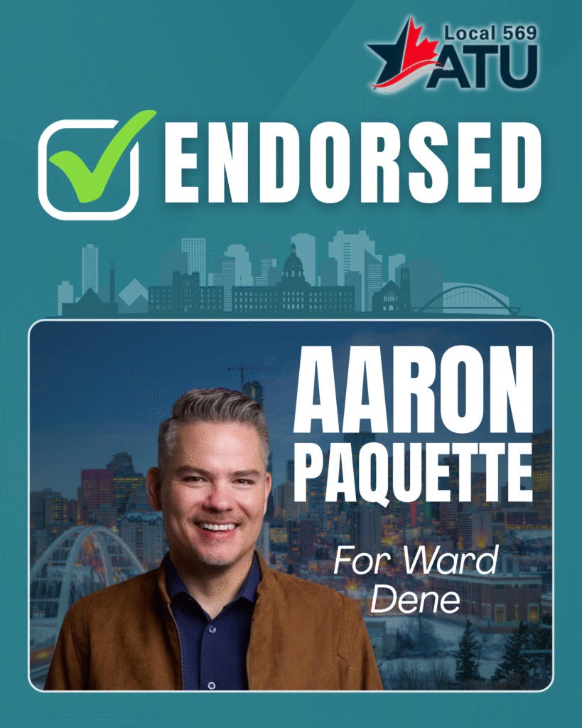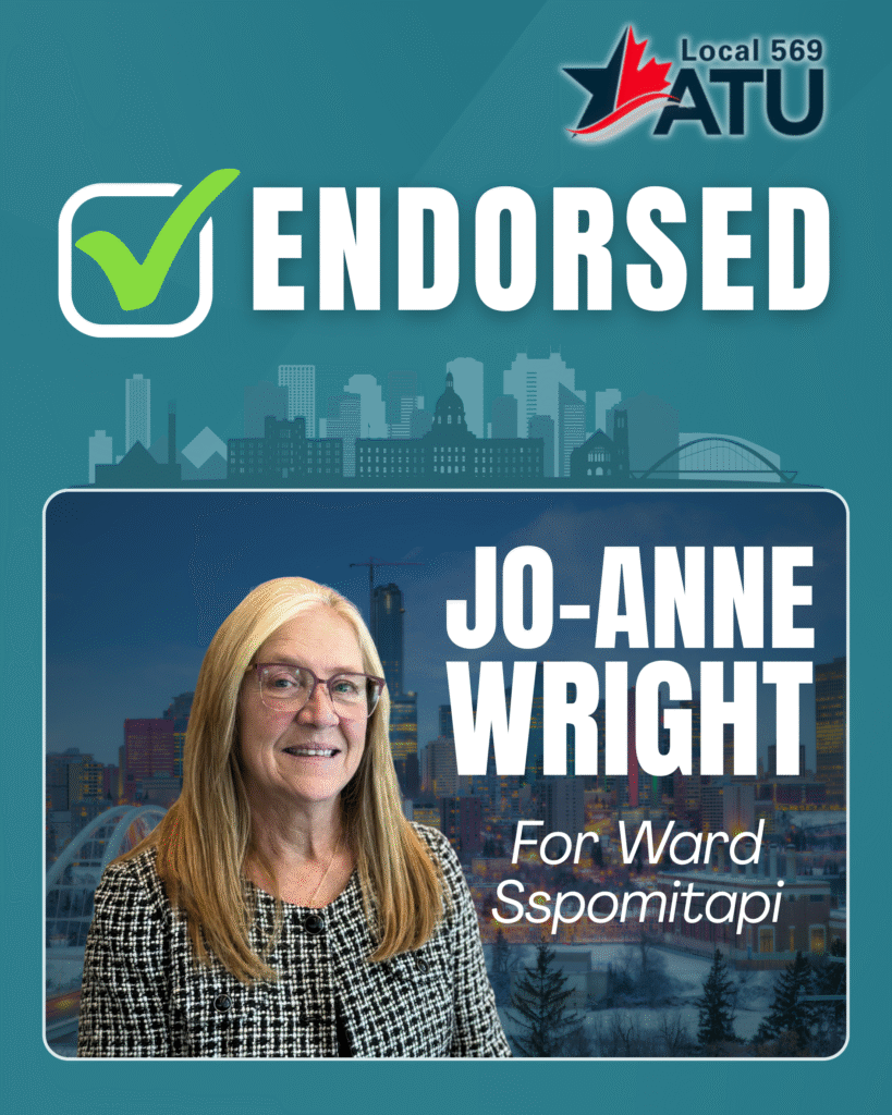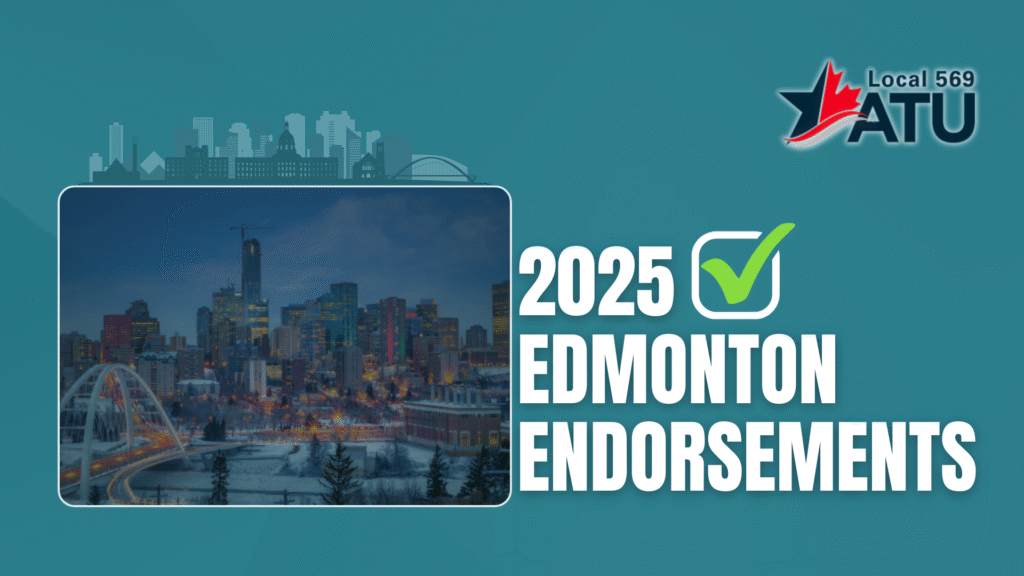 Amalgamated transit Union Local 569 is proud to announce the following endorsements for election to Municipal Councils where our members are employed. It’s significant that we are able to endorse 8 current members of the Edmonton Council for election this October. Under outgoing Mayor Sohi’s leadership, NO work has been contracted out in the current term, jobs have been protected, many bad ideas have been discarded and a great record of governing has been established.