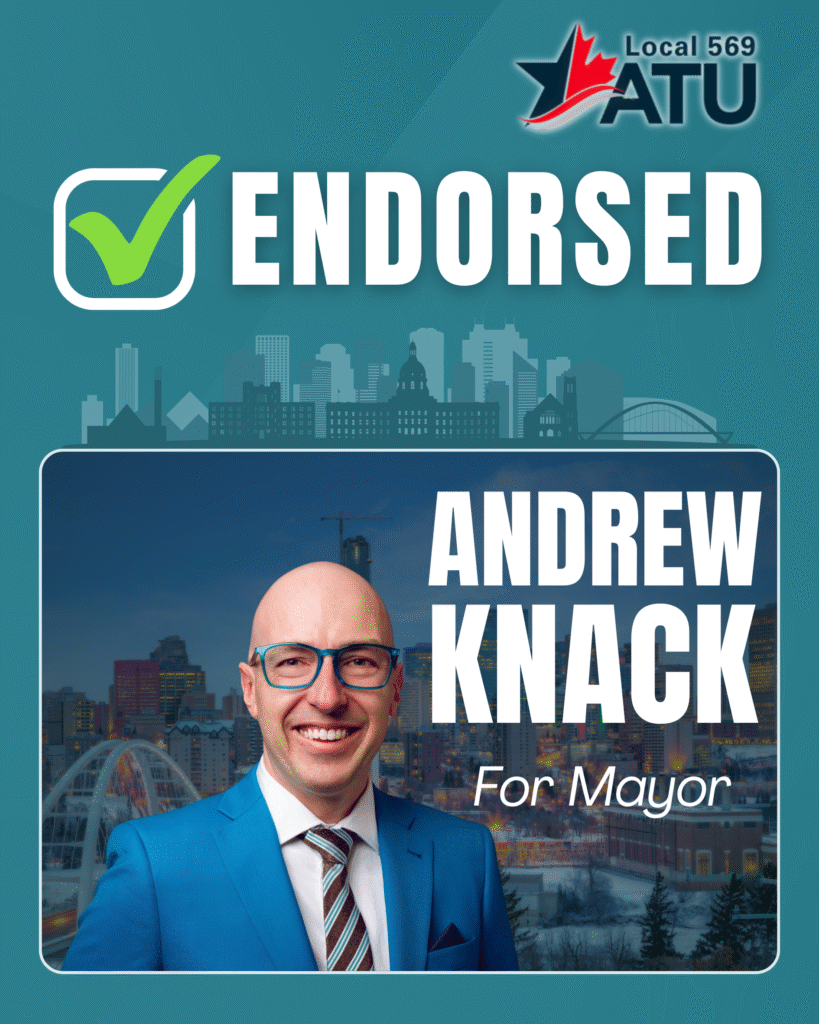 ATU is proud to endorse Andrew Knack for Mayor. Councillor Knack has over a decade of experience on Council. He unwaveringly supports the issues that matter most to every-day Edmontonians – to ATU members – and he has stood with workers’ issues and Transit issues without fail.