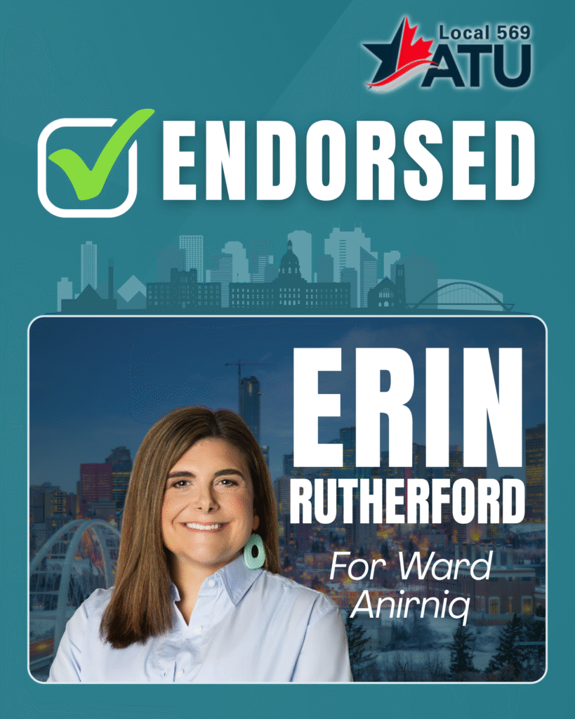 Incumbent Councillor Erin Rutherford is the easy choice here. Erin has been loyal, reliable and hard working on the issues that matter most to Edmontonians and ATU members – never supporting contracting out, saving hundreds of ATU members’ jobs that were on the chopping block, ending the push to outsource all of ETS through the Regional Transit Commission and ending the ill-conceived “Re-imagine” scheme. Erin ticks the box every time.